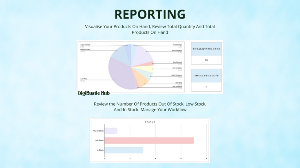 Inventory Tracker Tab: Easily log your products, track stock levels, record restocks, and monitor low-stock alerts.