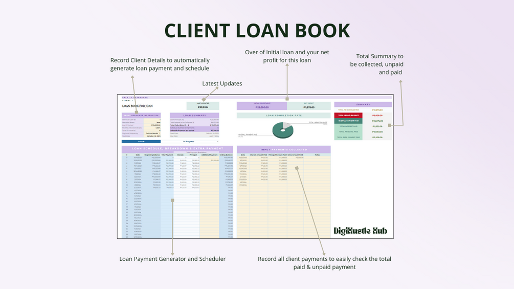 ✅ Individual Loan Books for 150 Clients: Track monthly, daily, weekly, or bi-weekly payments effortlessly. Each client gets their own dedicated loan book!
