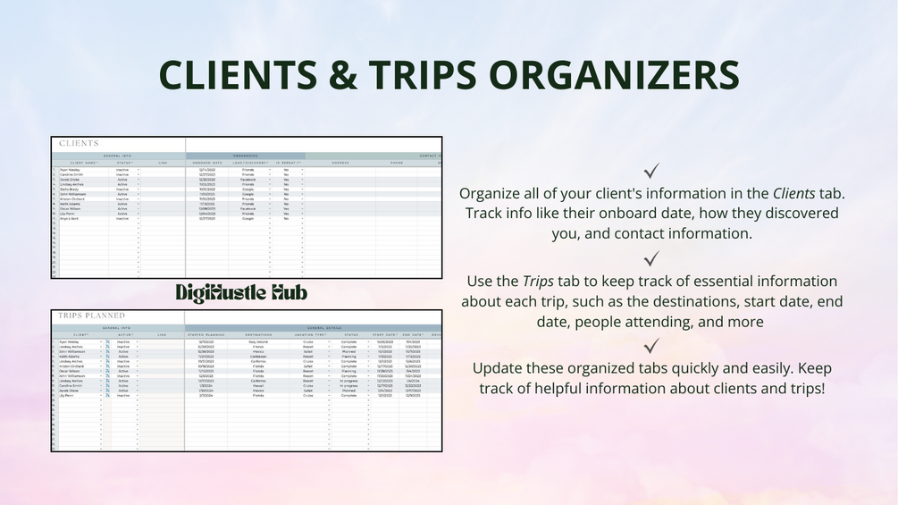 🗃️ Clients & Trips Organizers: Efficiently organize client and trip details for seamless management.