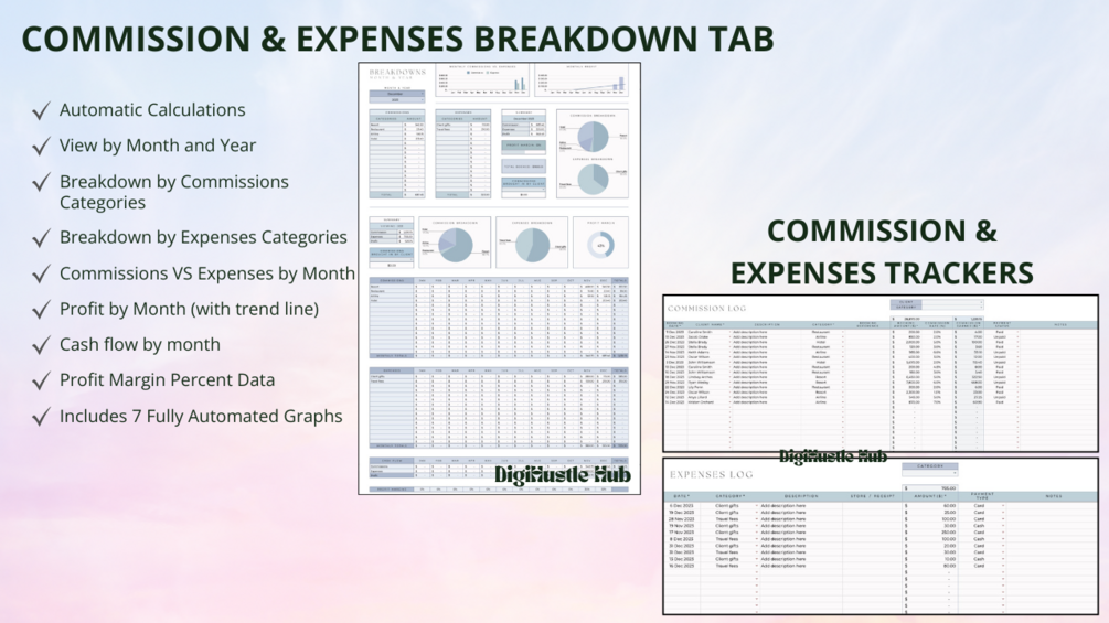 💰 Commission & Expenses Trackers: Automatic calculations, breakdowns, and 7 fully automated graphs.