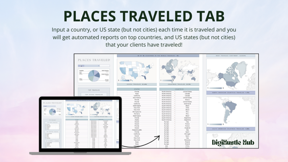 🌍 Places Traveled Tab: Get automated reports on top countries and US states your clients have explored.